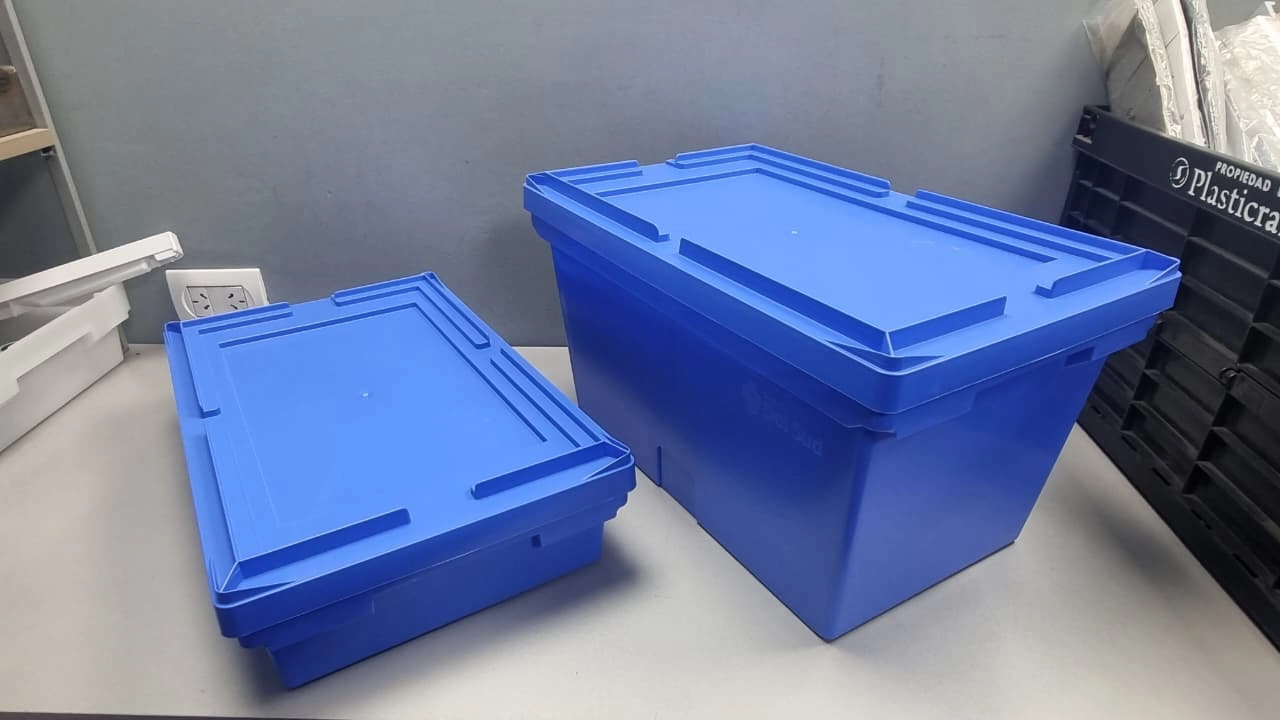 Compatibles con sistemas logísticos de e-commerce, industria farmacéutica, automoción y retail, estos contenedores cuentan con superficies de excelente terminación, seguras para operarios y equipos automatizados. Además, su base con grip antideslizante mejora el manejo y la estabilidad durante el transporte interno.