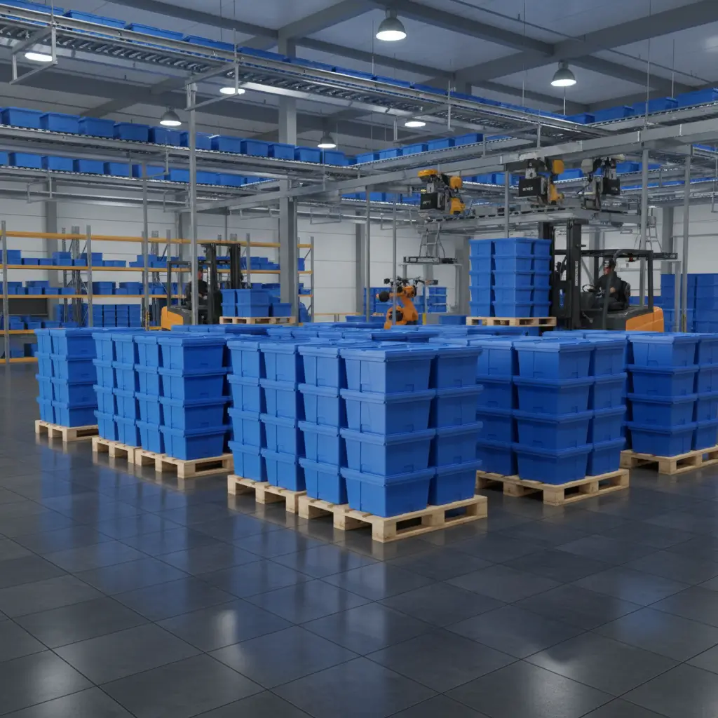 Los contenedores Nexus-Box de Plasticraft son una solución logística reutilizable, diseñada para optimizar operaciones en centros de distribución y sistemas automatizados de picking. Su diseño normalizado con tapa garantiza precisión, robustez y compatibilidad tecnológica en el transporte y almacenamiento de productos.